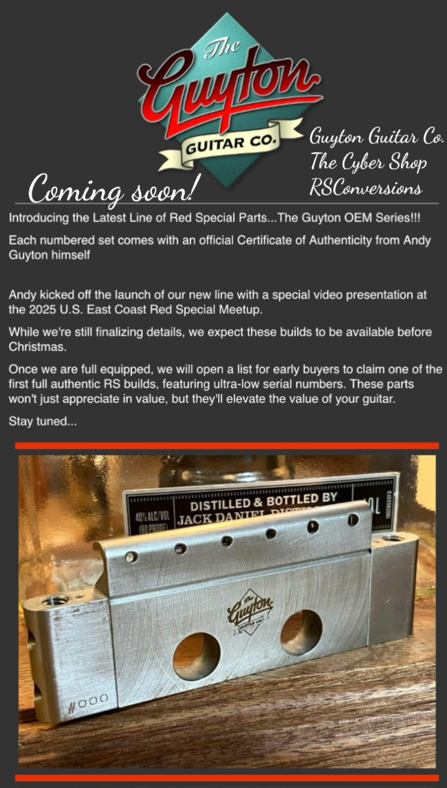 RSConversions is a renowned specialist in Red Special guitar conversions and parts worldwide. Along with The Cyber Shop we offer a range of services, including full conversions, handcrafted pickguards, electronics and supplying the parts for the BMG Supers. Founded in 2004, RSConversions has established itself as a trusted authority in the guitar community, with a strong reputation for quality and attention to detail.